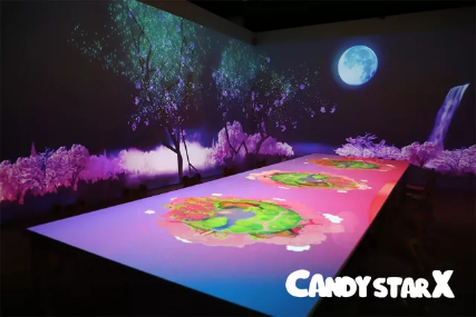CandystarX是首家以国内原创IP与新媒体艺术结合的亲子互动乐园,有儿童版的teamlab之称,是以国内IP儿童剧呀咪王子和卷卷公主探索奇妙宇宙为故事主线,在和谐的宇宙观和美好的世界观里探寻儿童成长的幸福与快乐。