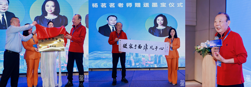 (杨茗茗先生、陈在华先生、龚宪勤女士一同揭牌,杨茗茗先生赠送亲笔书写墨宝 并致辞)