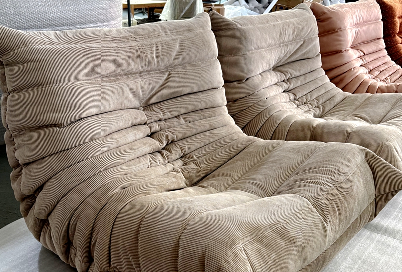 而针对现代家庭多元化需求推出的布艺款懒人沙发,则精准踩中“绿色可持续”“耐造易打理”等行业热点。面料采用天鹅绒布,保持天然本真,实现了“泼洒汤汁一擦即净、宠物抓挠不留痕迹”的实用特性,完美适配有老人、小孩或宠物的家庭场景。内部填充的高弹海绵摒弃传统金属骨架设计,既减轻了沙发重量方便单手挪动,又通过分层支撑结构实现“包裹感与支撑力平衡”,让用户在随意瘫坐时仍能保持脊柱舒适姿态。