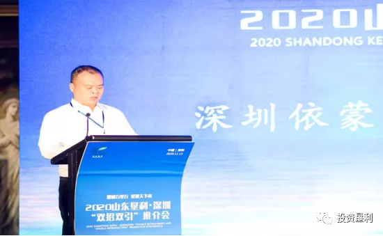 民盟深圳市科技创新委员会副主任李银松、深圳市齐鲁总商会副会长焦红、深圳市山东东营商会会长周峰、正威国际集团投资副总裁张铁军等行业协会及企业家代表出席推介会。深圳东营商会会长周峰、深圳依蒙科技有限公司总裁黄伟作为代表致辞。