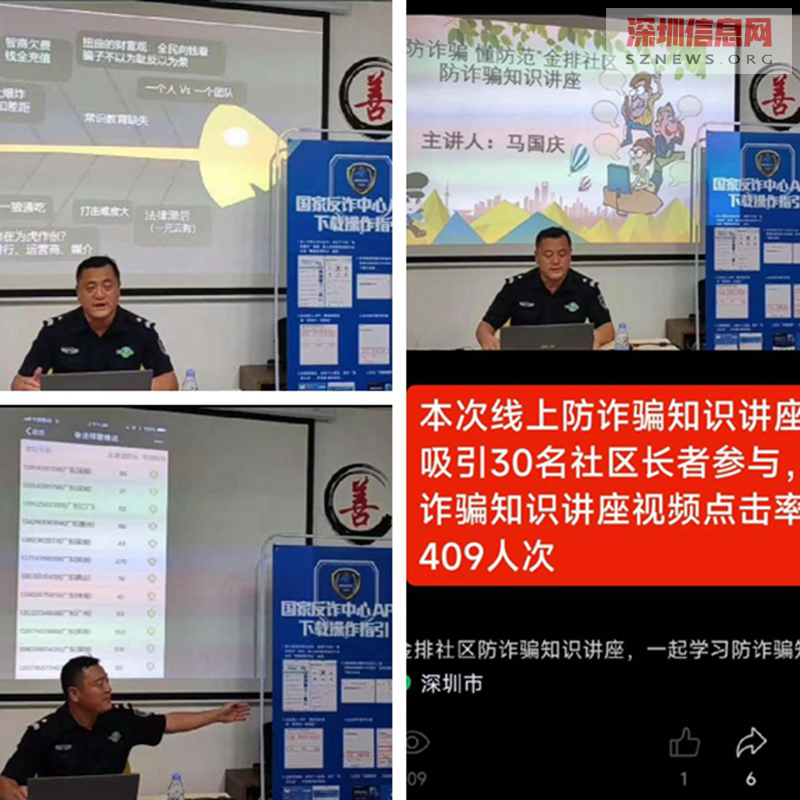 本次线上活动,邀请布吉街道罗岗派出所反诈专员马警官为长者们线上直播讲解诈骗典型案例,反诈专员深入浅出地为长者们揭露“网络诈骗”、“电信诈骗”、“组织免费旅游”、“保健品诈骗”等诈骗作案手法、技巧等,促使长者们掌握防诈骗的技巧,告诫长者们千万不要贪小便宜,别让骗子利用这种心理而有机可趁。