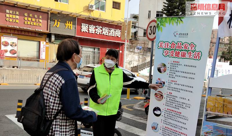 在食品安全线下宣传活动中,社区工作人员通过(现场宣讲、易拉宝、食安小学堂科普手册、宣传单张等)多种形式,向社区居民宣传最新的食品安全政策信息及深圳实施食品安全战略工作内容,向居民宣传食品安全知识,食源性疾病预防知识,科普辟误,风险食品辨别知识,营养均衡膳食搭配等相关内容。