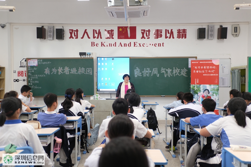 深圳信息网12月9日消息(通讯员 朱贞贞)11月30日,由海珠社区党委主办,深圳市鹏星社会工作服务社承办,南山区第二外国语学校(集体)海德学校协办的“有为长者进学校,关爱社区下一代”海珠社区主题教育活动顺利举办。海珠社区党员志愿者马美荣女士在南山区第二外国语学校(集体)海德学校的八年级2班和同学们讲述了自己的人生经历,以自己的亲身经历鼓励学生们;同时也宣传了海珠社区助老志愿者服务队,呼吁学生们关爱老人,从关心身边的老人做起。