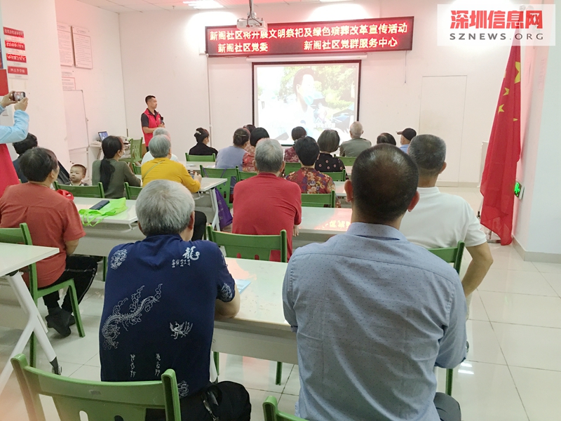 深圳信息网4月2日讯(新阁社区 郭玉姿)梅林新阁社区有居民近万人,管辖面积约为2.239平方公里,其中新阁社区后山墓园占地1.67平方公里,在清明节来临之际,为了倡导居民文明祭祀、绿色祭祀、安全祭祀,同时结合深圳市民政局关于《深圳市节地生态安葬奖励办法》,福田区2021年殡葬改革宣传活动方案,在新阁社区党委的指导下,邀请深圳市报恩福地绿色殡葬公益宣讲人员对居民进行了文明祭祀暨绿色殡葬改革宣传讲座,有29名居民参与此次讲座。