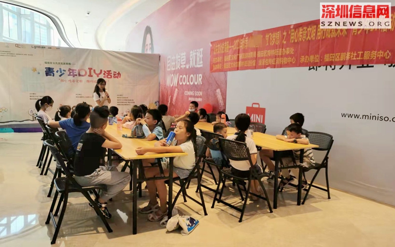 深圳信息网9月26日消息(李庚)9月25日下午,“童心向党 喜迎国庆”青少年节庆DIY活动在梅林绿景佐阾虹湾购物中心1楼举办,此活动为福田区公共文化进商圈——“绽放梅林 放飞梦想”系列活动,活动由福田区广电文化旅游体育局、福田区梅林街道办事处主办,福田区鹏祥社工服务中心承办。