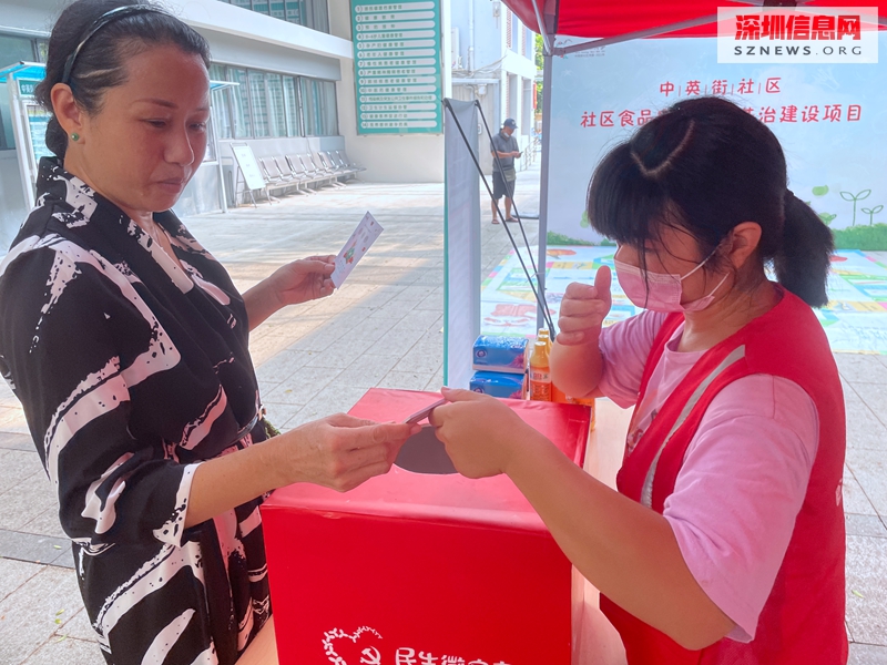2021年9月29日上午,由中英街社区党委主办,民生微实事——社区食品安全社会共治建设项目之“食品安全伴我行,全民共建食安城”宣传活动在中英街社区社康门口举行。