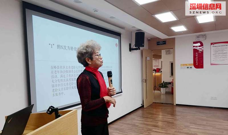 2021年11月25日,峰景社区长青老龄大学乐龄学苑参与南山区桃源街道标准化建设考核评估。峰景社区长青老龄大学乐龄学苑常务校长陈锦青出席会议并介绍峰景社区长青老龄大学乐龄学苑办学情况。